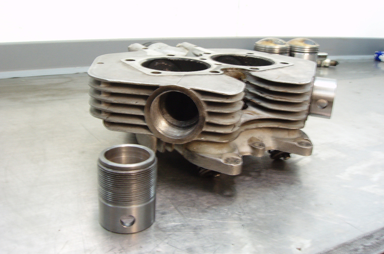 Push-over Umbau, für Triumph Modelle 1974-1978 mit gesteckten Krümmern zur besseren Gas-Dichtheit, werden mit dickwandigen Stahl- ''stubs'' ausgeführt, sodaß der Kanal übergangslos ausgeführt ist.